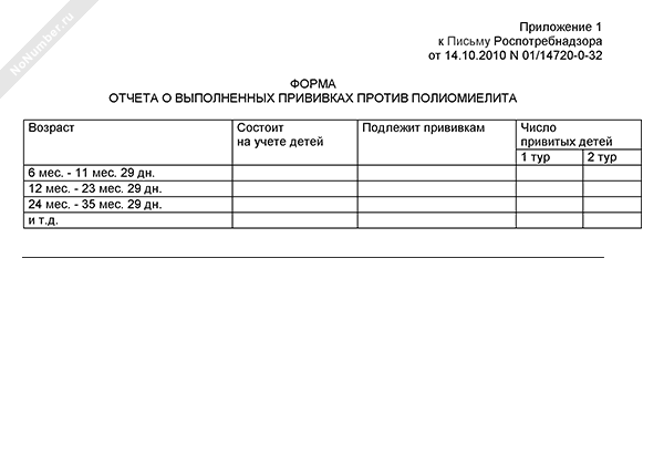 Форма отчета о выполненных прививках против полиомиелита (рекомендуемый образец заполнения)