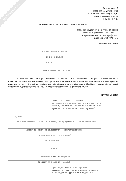 Форма паспорта кранов мостового типа (рекомендуемый образец заполнения)