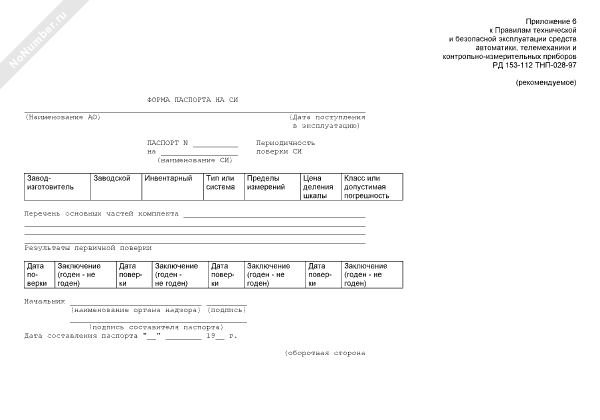Форма паспорта на средство измерений (рекомендуемый образец заполнения)