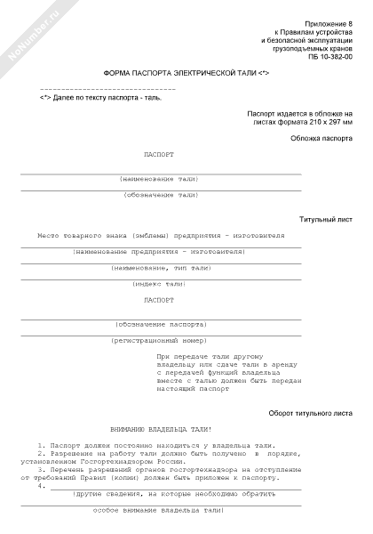 Форма паспорта стропа (рекомендуемый образец заполнения)