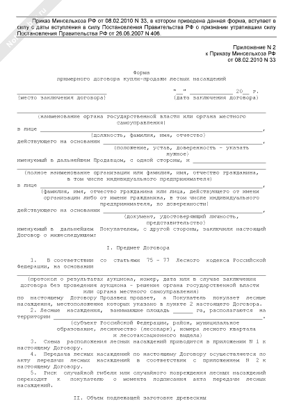 Форма примерного договора аренды лесного участка (рекомендуемый образец заполнения)
