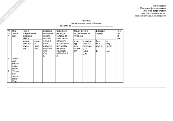 Форма расчета лимита потребления энергии (рекомендуемый образец заполнения)