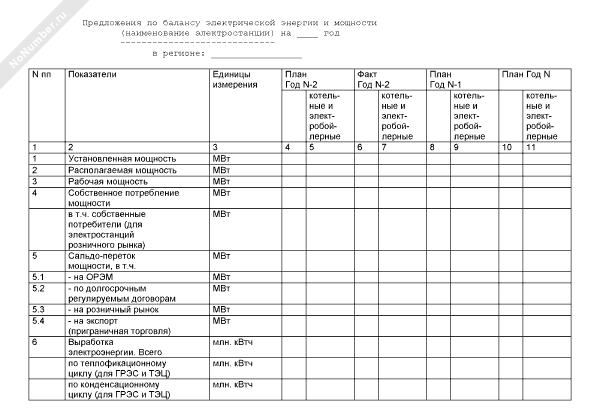 Предложения по балансу электрической энергии и мощности (форма № 4)