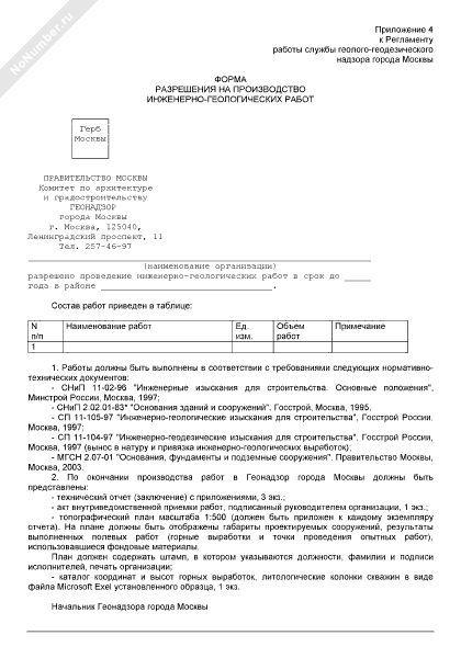 Форма разрешения на работу в охранной зоне магистрального газопровода