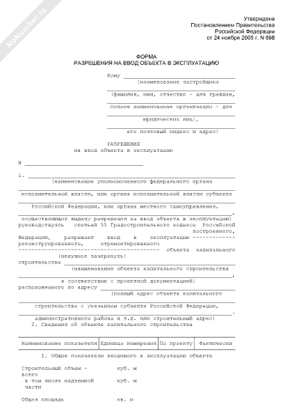 Форма разрешения на строительство (рекомендуемый образец заполнения)