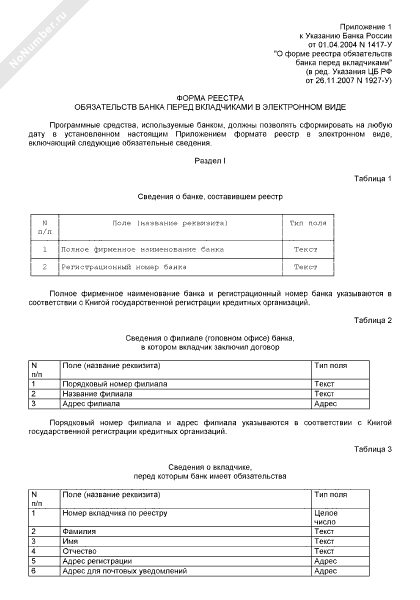 Форма реестра обязательств банка перед вкладчиками в электронном виде