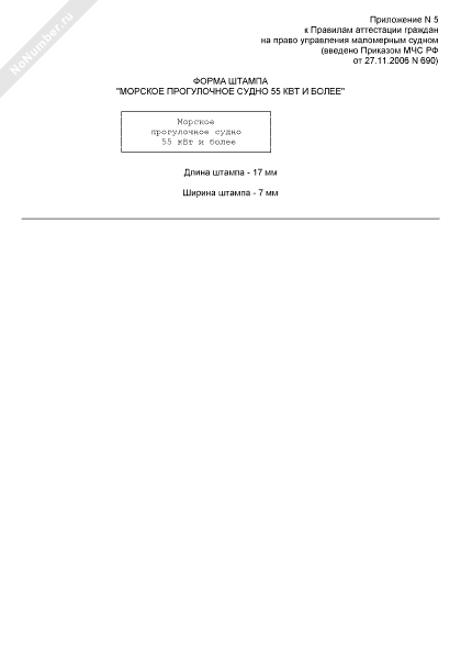 Форма штампа «Морское прогулочное судно 55 кВт и более»