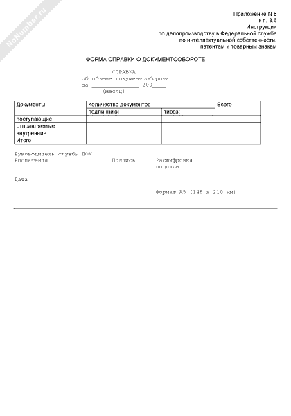 Форма справки об объеме документооборота Роспатента за месяц