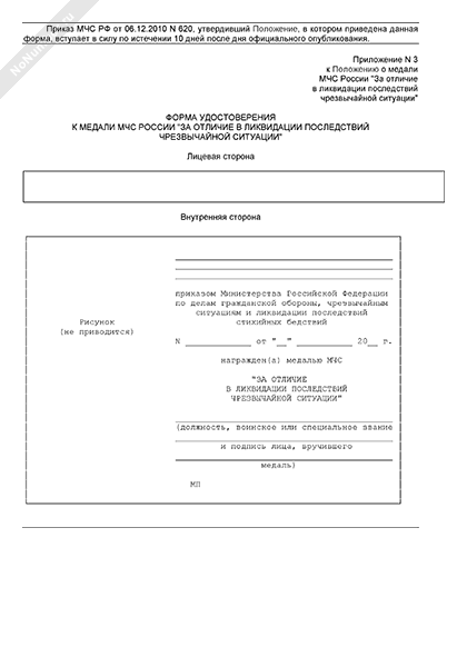 - Источник– Приказ МЧС РФ от 06.12.2010 № 620
