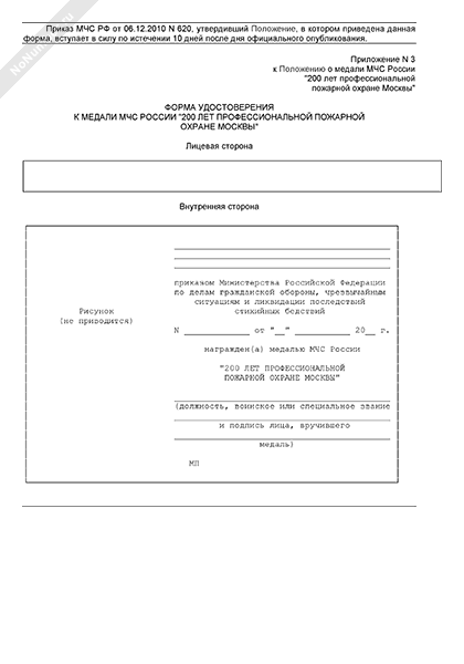- Источник– Приказ МЧС РФ от 06.12.2010 № 620
