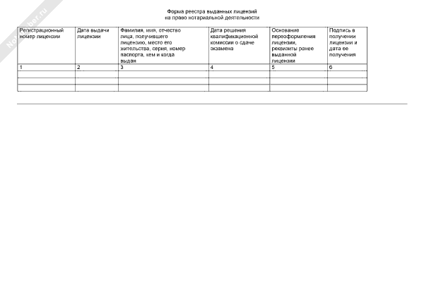 Форма реестра выданных лицензий на право нотариальной деятельности