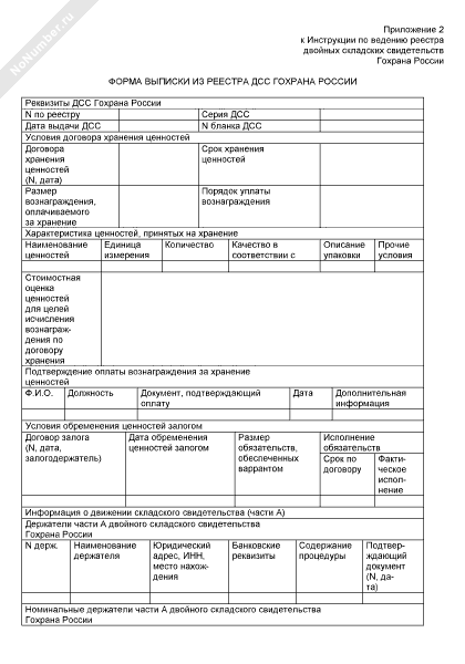 Форма выписки из реестра двойных складских свидетельств Гохрана России