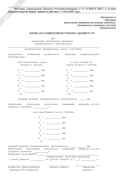 Форма акта измерений внутреннего диаметра измерительного трубопровода