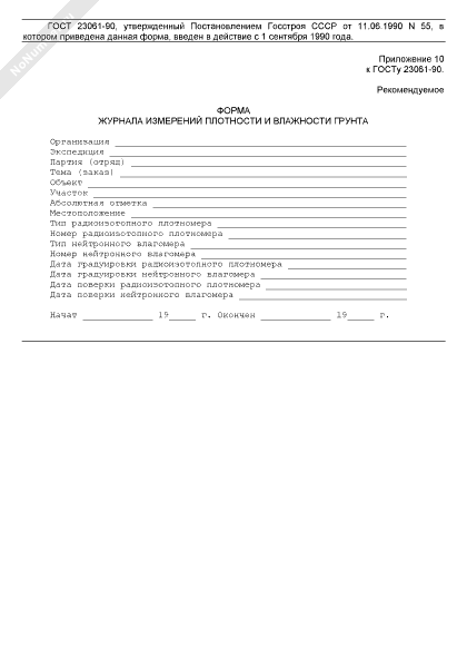 Форма журнала измерений плотности и влажности грунта (рекомендуемая)