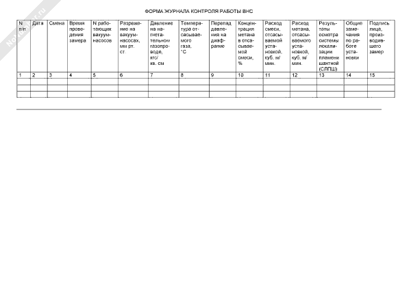 Форма журнала осмотра и ремонта дегазационных газопроводов