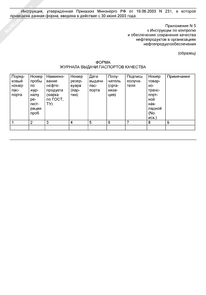 Форма паспорта качества для поставки нефти на экспорт (рус./англ.)