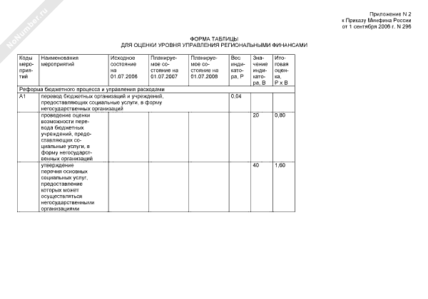 Форма таблицы для оценки уровня управления муниципальными финансами