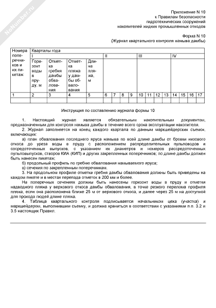 Форма журнала наблюдений квартального контроля намыва дамбы (форма № 10)