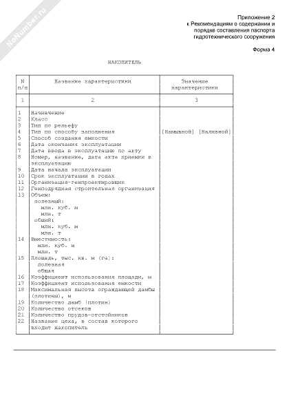 Характеристики накопителя техногенных отходов (форма № 4)