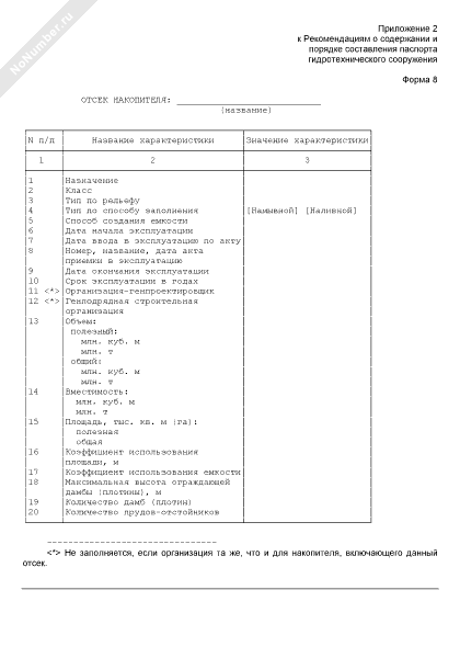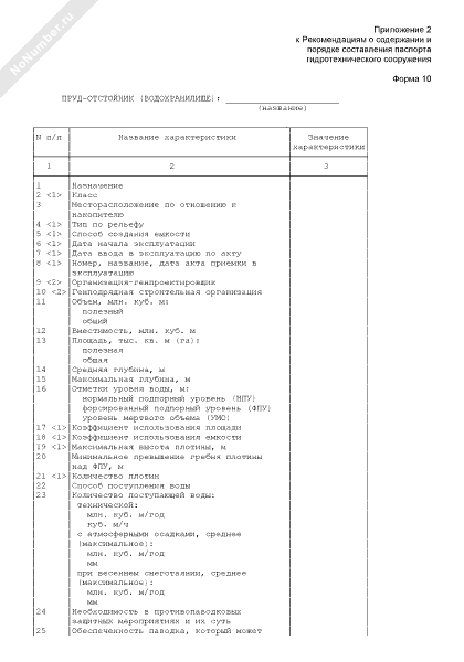 Характеристики пруда-отстойника (водохранилища) (форма № 10)