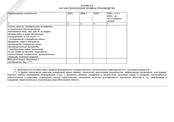 Научно-технический уровень производства предприятий стройиндустрии Московской области (форма № 4)