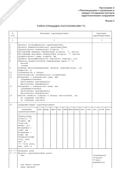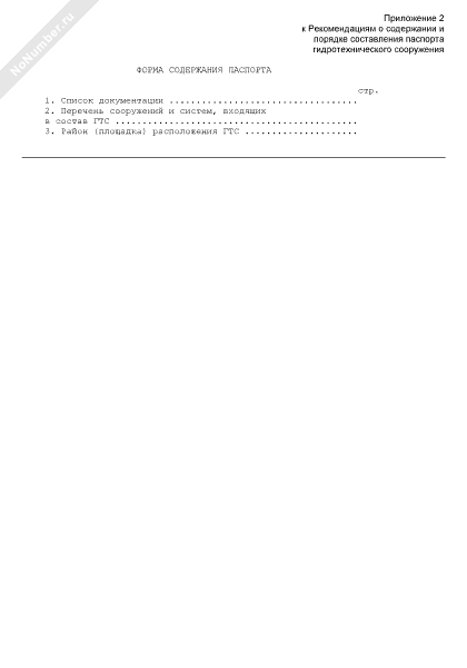 Форма содержания паспорта гидротехнического сооружения