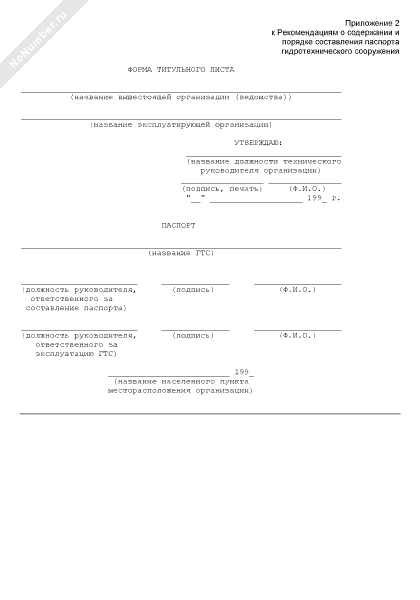 Форма титульного листа паспорта гидротехнического сооружения
