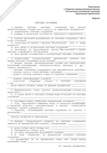 Очистные сооружения для очистки производственных сточных вод в цехах и на территории предприятия (форма № 6)