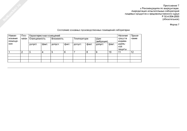 Состояние основных производственных помещений лаборатории (форма № 7)