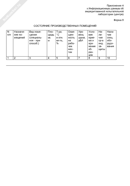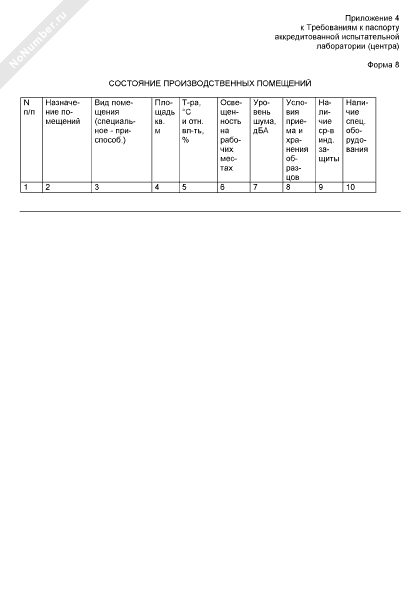 Состояние производственных помещений (форма № 8)