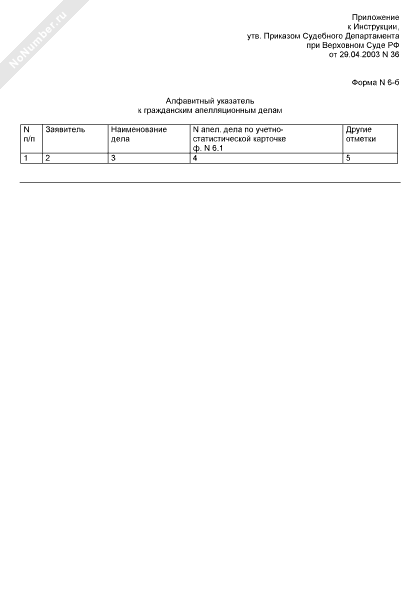 Алфавитный указатель к гражданским апелляционным делам (форма № 6-Б)