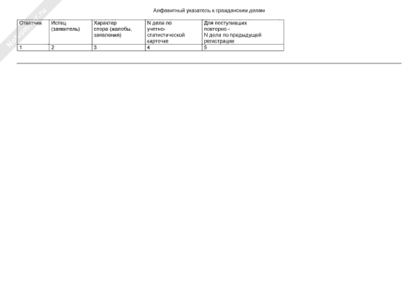 Алфавитный указатель к гражданским делам (форма № 6-А)