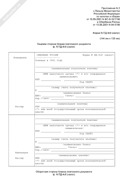 Бланк платежного документа (144 мм x 135 мм) (форма № ПД-4сб) (налог)