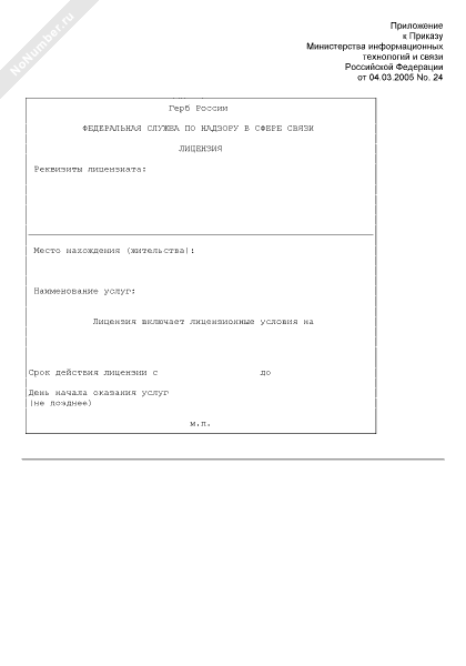 Форма бланка лицензии Федеральной службы по надзору в сфере связи
