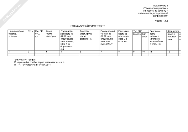 Подъемочный ремонт пути. Форма № П.1.6 (рекомендуемый образец заполнения)
