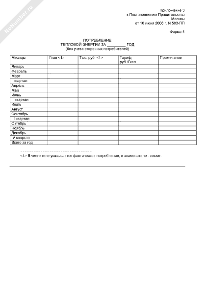 Потребление тепловой энергии бюджетной организации комплекса социальной сферы города Москвы с объемом энергопотребления до 1 тыс. т у.т. включительно (форма № 4)