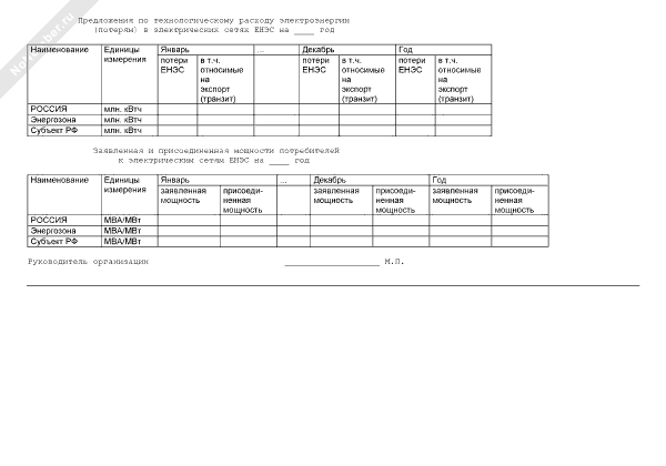Предложения по технологическому расходу электроэнергии (потерям) в электрических сетях ЕНЭС (форма № 11)