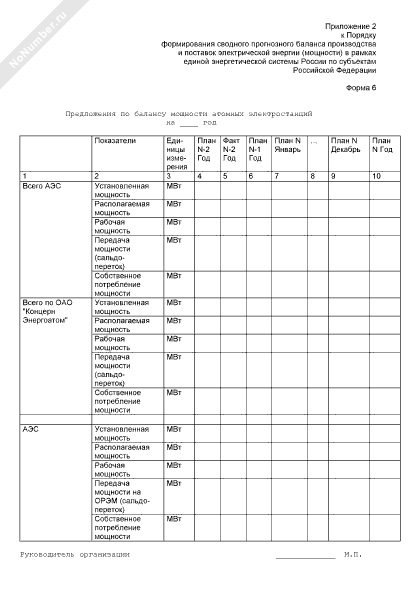 Предложения по балансу мощности атомных электростанций (форма № 6)