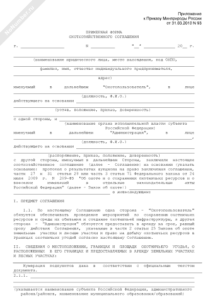 Примерная форма охотхозяйственного соглашения
