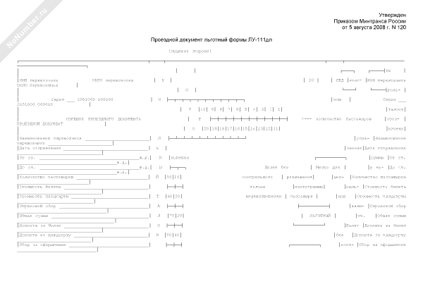Проездной документ детский. Форма № ЛУ-111дд (рекомендуемый образец заполнения)