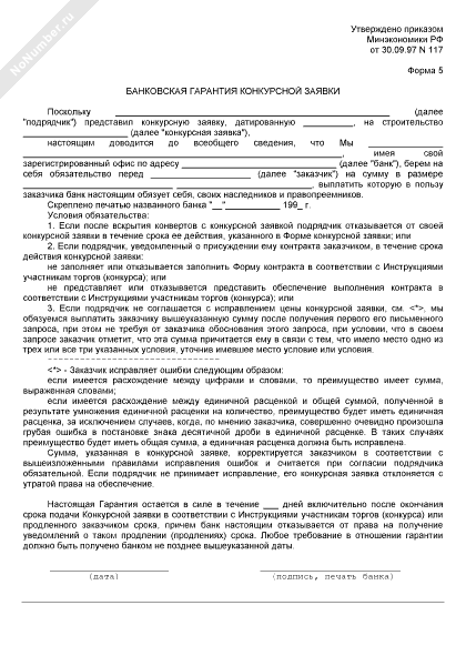 Банковская гарантия конкурсной заявки на закупку работ (форма № 5)