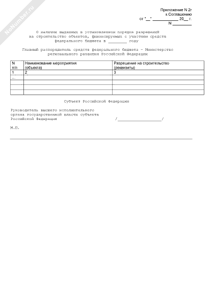 - 6Гарантийное письмо о наличии выданных в установленном порядке разрешений на строительство объектов, финансируемых с участием средств федерального бюджета (приложение к соглашению о предоставлении субсидии из федерального бюджета бюджету субъекта Российской Федерации на софинансирование расходных обязательств субъекта Российской Федерации (муниципальных образований) по реализации мероприятий федеральной целевой программы (подпрограммы))