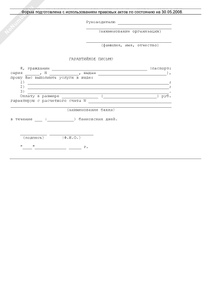 - 1Гарантийное письмо об оплате услуг (для физического лица)