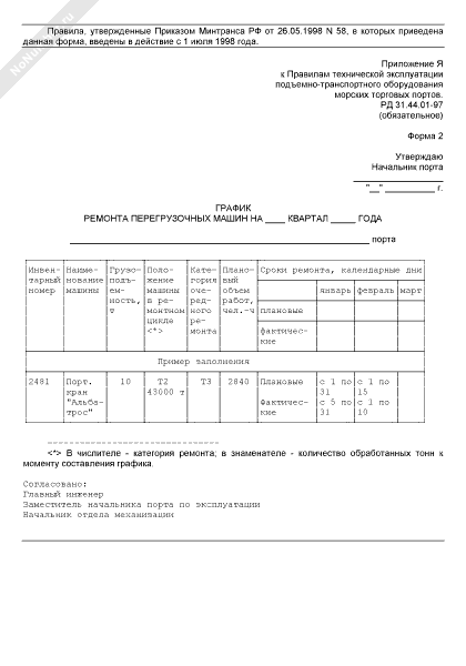 Сетевой график ремонта (приложение к договору на ремонт технологического оборудования)