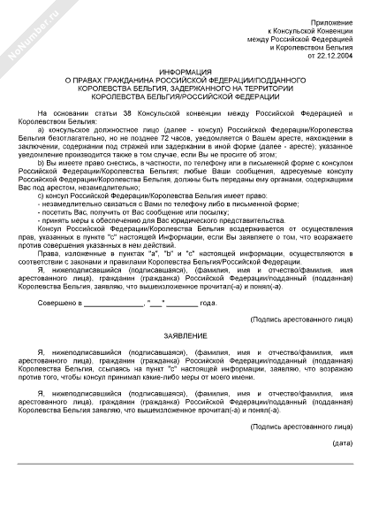- 244Информация о правах гражданина Российской Федерации/подданного Королевства Бельгия, задержанного на территории Королевства Бельгия/Российской Федерации