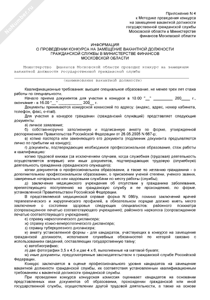 - 246Информация о проведении конкурса на замещение вакантной должности гражданской службы в Министерстве финансов Московской области