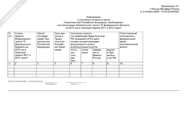 - 369Информация о состоянии готовности актов Правительства Российской Федерации, необходимых для реализации Федерального закона «О федеральном бюджете на 2010 год и плановый период 2011 и 2012 годов»