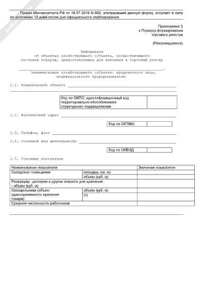 - 517Информация об объектах хозяйствующего субъекта, осуществляющего поставки товаров, предоставляемая для внесения в торговый реестр