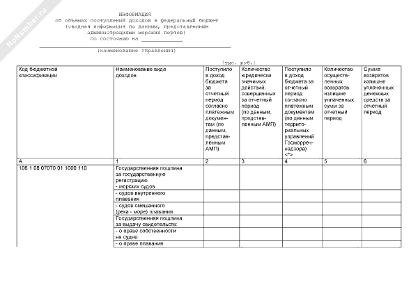 - 503Информация об объемах поступлений доходов в федеральный бюджет от уплаты государственной пошлины за государственную регистрацию морских судов, судов внутреннего плавания, судов смешанного (река — море) плавания, за выдачу свидетельства о праве собственности на судно, о праве плавания и другие юридически значимые действия, осуществляемые федеральными государственными учреждениями администрациями морских портов