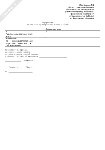 - 508Информация об объемах приобретения элитных семян (приложение к отчету о расходах бюджета субъекта Российской Федерации (местного бюджета), источником финансового обеспечения которых является субсидия из федерального бюджета)
